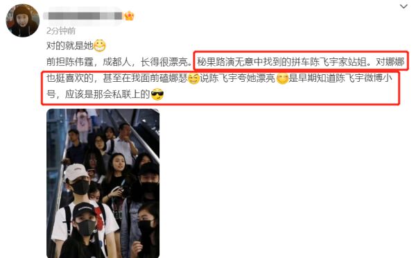 还有网友火速出面爆料,称这个女生是陈飞宇秘果时期的站姐,后来签约了个公司做艺人,还称陈飞宇早期的一些机场照,还有这位女生的身影。