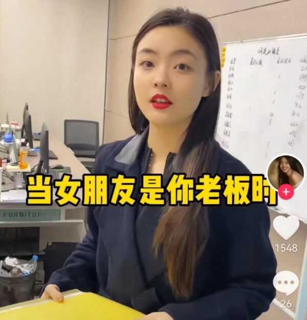 而女方的账号也很快被扒出,她在某社交平台上粉丝21万,日常发布的都是一些短视频内容,都是同一个系列“当女朋友是你老板时”,上面还显示毕业于清华大学。