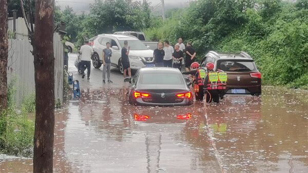 7月20日夜间至21日白天,受暴雨影响,重庆大渡口区多处发生城市内涝和垮塌,其中个别居民小区、停车场、道路低洼区域积水严重、车辆被淹、群众被困。