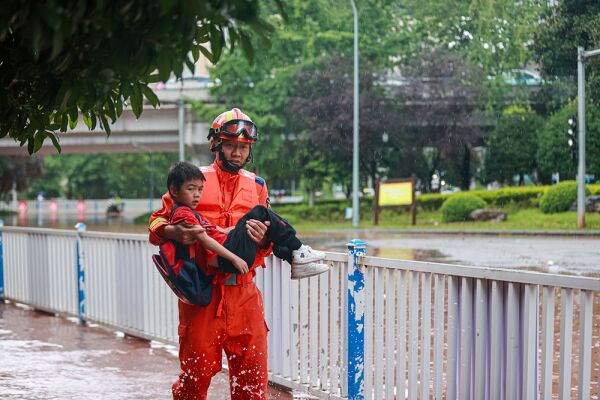 在九中立交、新华立交、茄子溪石棉厂等地,由于地势原因,积水最深处达80厘米,最浅处也有40厘米,多名人员被困车内,且降雨仍在持续,积水还在上涨,消防救援人员紧急营救出8名被困群众。
