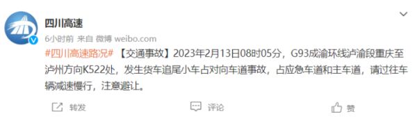 2月13日中午,红星新闻记者从四川高速公路相关管理部门人士处得到证实:G93成渝环线高速公路泸州境内发生一起6死1伤交通事故。