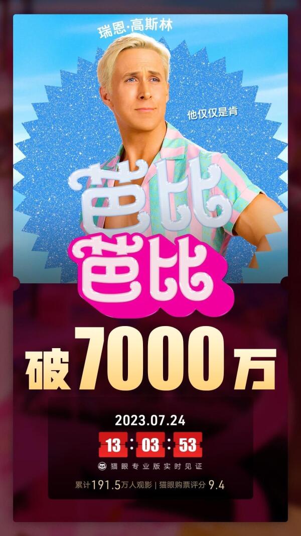 在中国,截至7月24日中午,《芭比》票房已超7000万元,且保持逆跌的良好态势。影片在中国的口碑也不错,豆瓣评分高达8.6分。此外,诺兰的《奥本海默》也已确定引进内地。