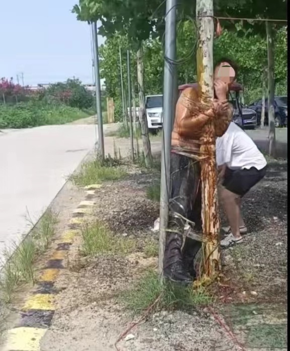 7月25日,一网友发布视频称,在河南省郑州市惠济区江山路边,一男子因婚闹被人绑在树上,身上被倒满酱油等物品,浑身发臭。