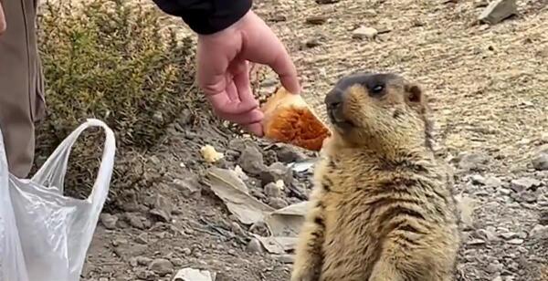 对此,祁连县文旅局提醒,野生动物一旦偏好接受人为投喂,虽不至于使其完全丧失野外觅食能力,但可能因此会降低对人类的警戒程度。鼠兔和旱獭,在幼年期很容易受到人为投喂的影响,而变得过度依赖人为饲养,甚至有可能导致无法在自然环境中生存。人类把食物投喂给野生动物容易使其胆固醇过高,且缺乏足够维生素及矿物质。向一些草食性动物投喂带有包装袋的食物,也会造成动物的肠胃阻塞,给动物带来严重的伤害。