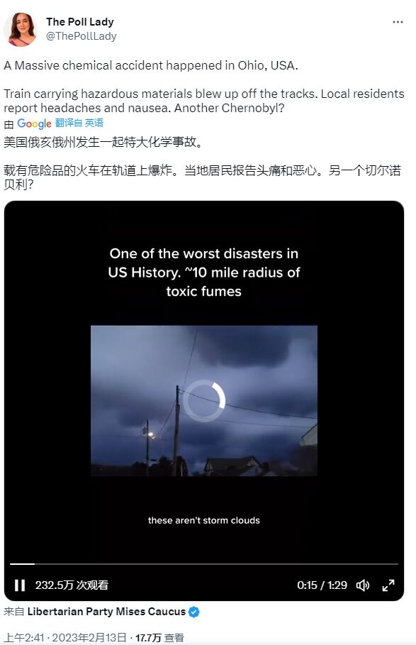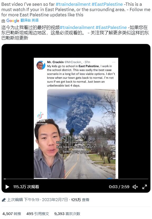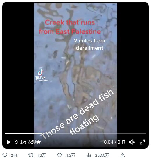 还有网友对于美国主流媒体的报道不是很满意,自己出马制作短视频讲解这些泄漏物的危害,在推特上已经获得了超过一百万的播放量。