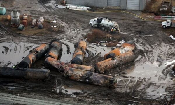 据CNN介绍,翻车的火车上有五辆油罐车载有极易燃的液态氯乙烯。由于事故,它们变得不稳定并有爆炸的危险。急救人员和紧急救援人员不得不给油罐车放气,将氯乙烯洒入沟槽,然后在火车变成炸弹之前将其烧掉。