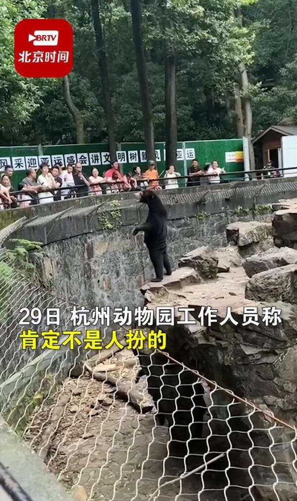 7月29日,据BRTV“时间视频”报道,7月27日,有网友发视频称杭州动物园黑熊疑似人扮演的。