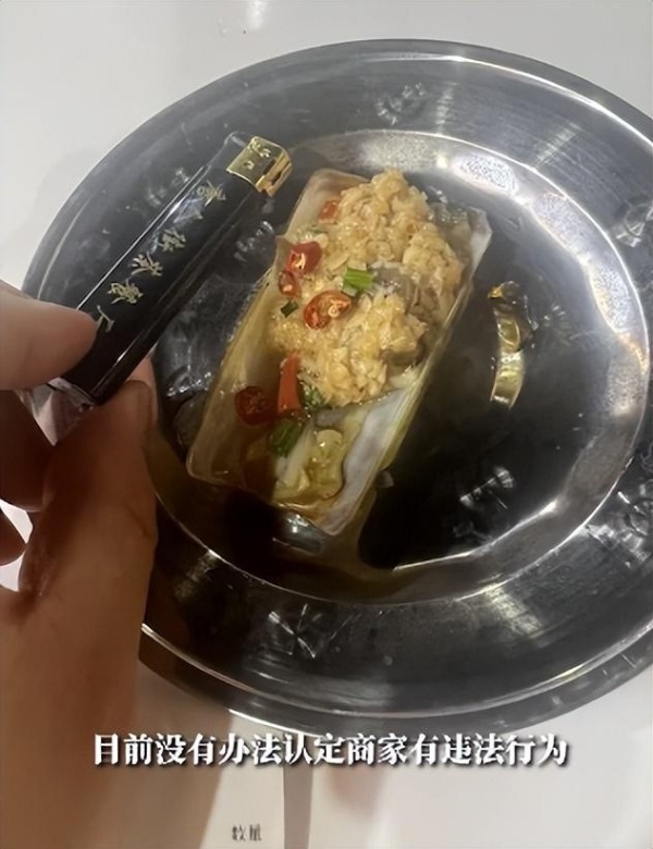 视频内容显示,铁盘上放着一只烤好的蛏子,个头并不大。