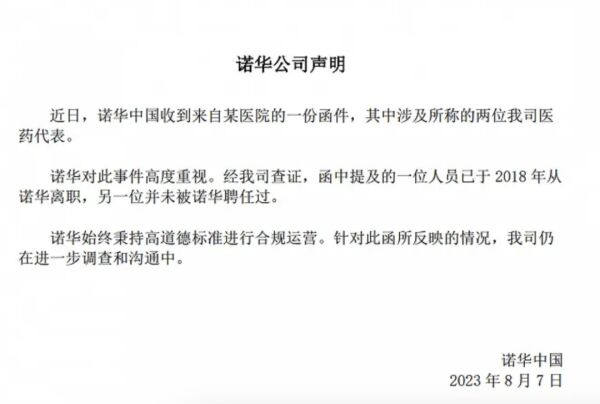 诺华中国回应了其中两人:一位早已离职,另一位压根没聘用过。