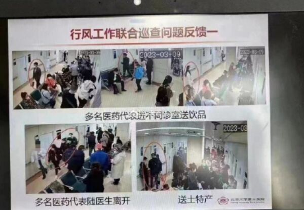 在某医院公布的监控中,经常能看到医药代表穿梭在各科室送礼的身影。