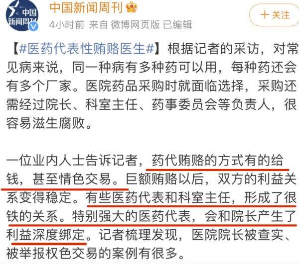 这个观点当然不会改变,但这几天我却也不断被医疗界的反腐刷三观。