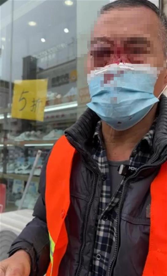 面部被打伤的环卫工(图源网络)