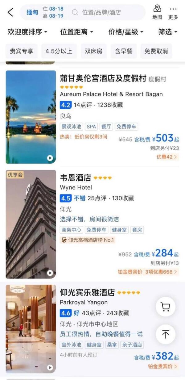 同时,缅甸旅游业恢复的节奏也十分缓慢。酒店价格降幅很大,几乎降了六成,五星级酒店最低只要300多元。