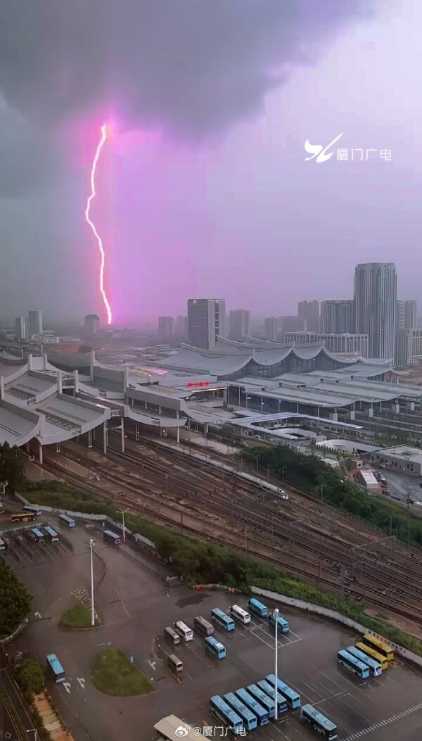 刚刚,厦门发布暴雨红色预警以及雷电黄色预警,不少地方都开始下暴雨。电闪雷鸣,天空出现一道芭比粉闪电,网友:像是天空的经脉。