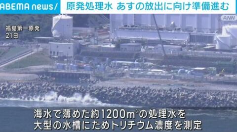 东电将经过海水稀释的1200立方米核污染水存放在大型水槽中,并检测放射性物质氚的浓度。测定工作自22日开始,如果24日上午10点前,其浓度不到1500贝克勒尔/升,东电将照计划将核污水通过海底隧道排放。但如果气象条件不佳,海浪过高情况下,船上的海上监测点无法进行浓度测定,排海计划将取消。
