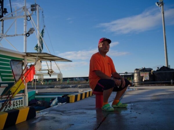 8月23日,打渔归来的小野春雄坐在日本福岛县新地町的渔港。新华社记者 张笑宇 摄