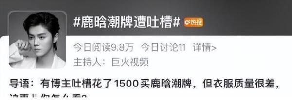 中国经济周刊—经济网讯 近日,一位买过鹿晗个人潮牌的网友吐槽衣服质量,称“1500块钱的衣服,到处都是线头,车工差劲,到处都有断线,估算一件的成本只能去到60块”,该网友的言论引发热议。#鹿晗潮牌遭吐槽#这一话题也冲上了热搜。