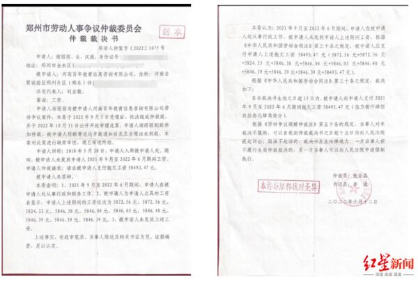 签完这则《借款协议》后不久,谢丽丽辞职离开了育人集团。离开育人集团时,她还被拖欠了两年近10万元工资,就拖欠工资一事,谢丽丽已经提起劳动仲裁,并在今年4月拿到了劳动仲裁裁定书。谢丽丽称,集团内也有部分员工与她一样,被拖欠了不少工资和社保。