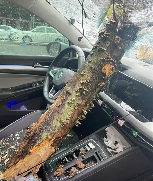 女子刚下车挡风玻璃被断裂树干砸穿直插驾驶位,当地:由管护公司与车主协商解决