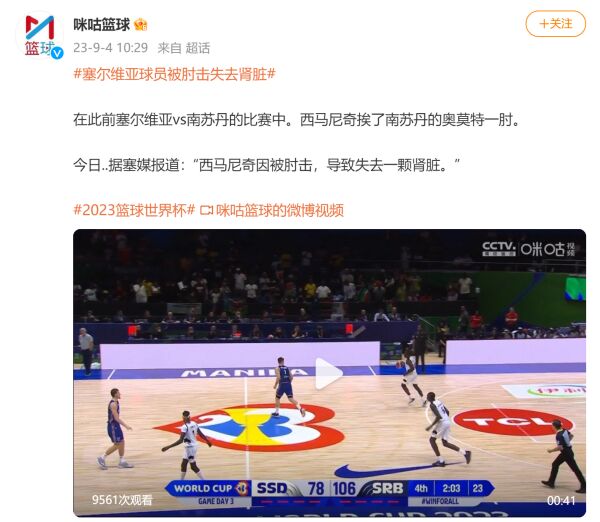 导读:鲍里萨·西马尼奇事情详述 9月4日,据咪咕篮球消息:在此前塞尔维亚vs南苏丹的比赛中。西马尼奇挨了南苏丹的奥莫特一肘。今日,据塞媒报道:“西马尼奇因被肘击,导致失去一颗肾脏。” 【来源:咪咕篮球】 塞尔维亚, 一颗肾脏, 一颗肾, 被肘击, 球员