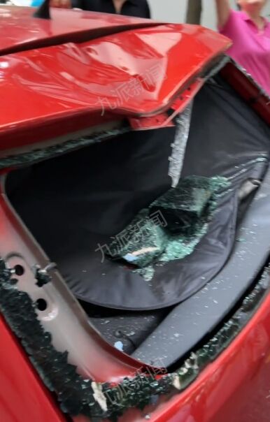 范先生的车挡风玻璃被砸碎。图/视频截图