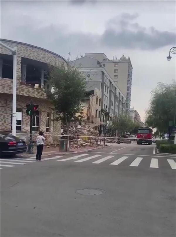 网络视频显示,一处路口附近有栋建筑发生坍塌,多名群众在附近围观,一辆挖掘机正在现场展开救援,民警在现场设置了警戒线。网友称,9月4日下午,黑龙江佳木斯同江市通港路一栋楼房发生了坍塌。