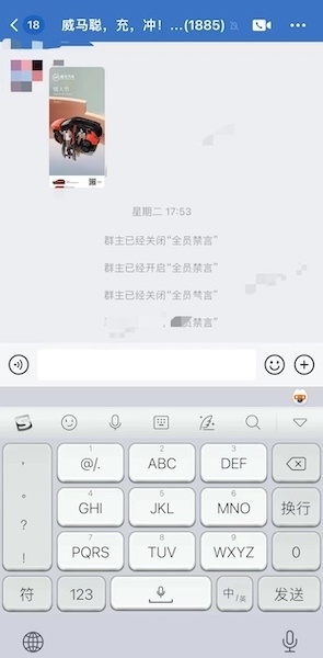 威马企业微信大群全员禁言中,人数仅剩1885人。受访者供图