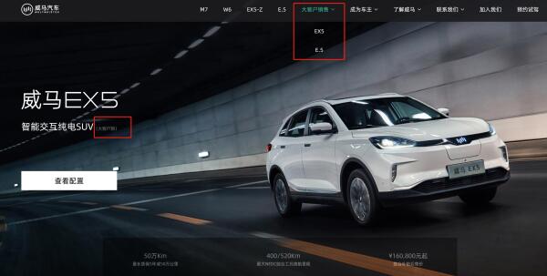 至今,打开威马官网仍然可以在首页找到“大客户销售”的选项,展示的EX5和E.5两款车都是专为大客户打造,威马称其“为出行量身定制,助力租赁、出行平台公司提高运营效率、提升企业价值”。而这个选项在头部造车新势力官网是看不到的。