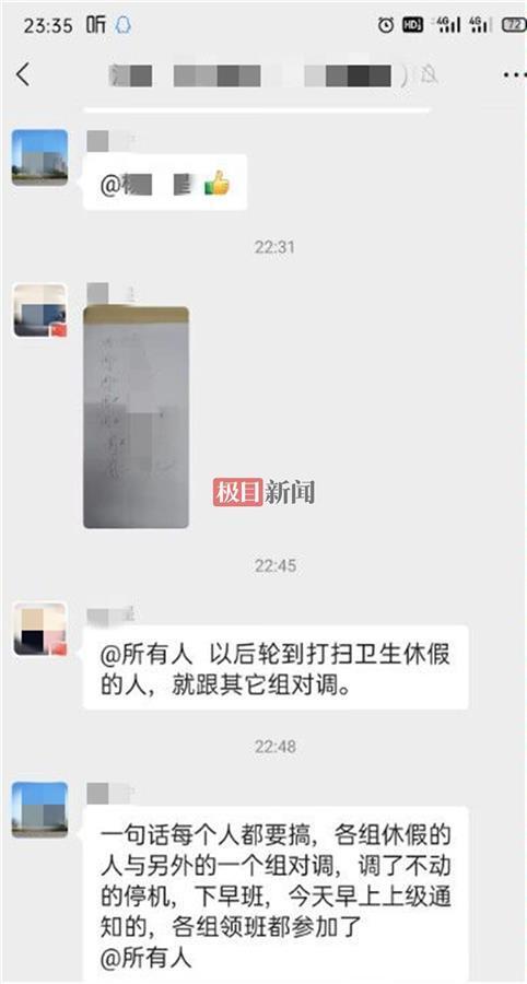 对于上述说法,郑义则表示:“不知道,车间主任在群里宣传的就是每个人都要打扫,从未提到过自愿和奖金的事。”