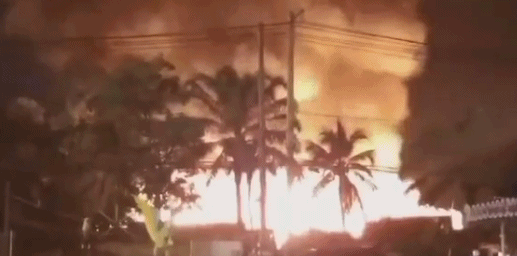 当地时间7日20时左右,泰国芭堤雅知名旅游景点四方水上市场发生严重火灾,火势迅速蔓延。(总台记者 李敏)