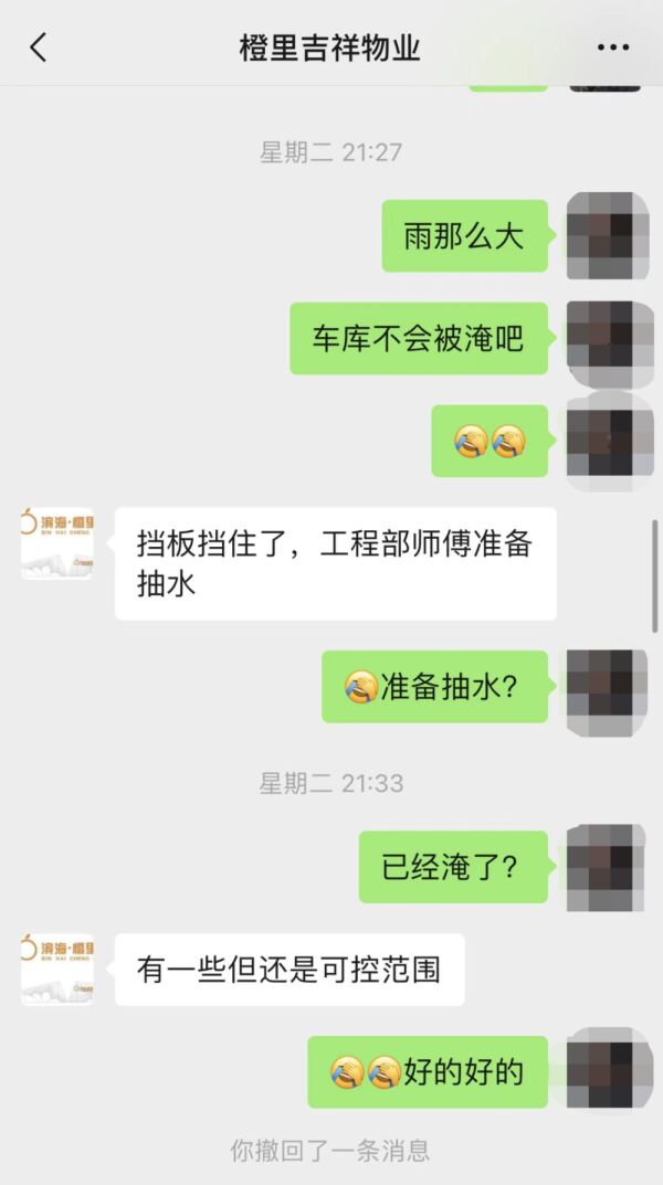 业主刘女士说,当晚9时左右,就有不少人在业主群里说要下楼挪车,但物业楼管以“地下车库刚刚放置防洪板,车出不去,防洪板没有领导指示不能撤”为由,拒绝业主下楼挪车。