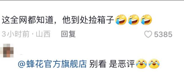 有网友称“有人说发过来的箱子是坏的,蜂花在底下评论: 不会呀,我捡到的时候还好好的。”“他们公司是不是有个部门专门捡纸皮箱的啊”。