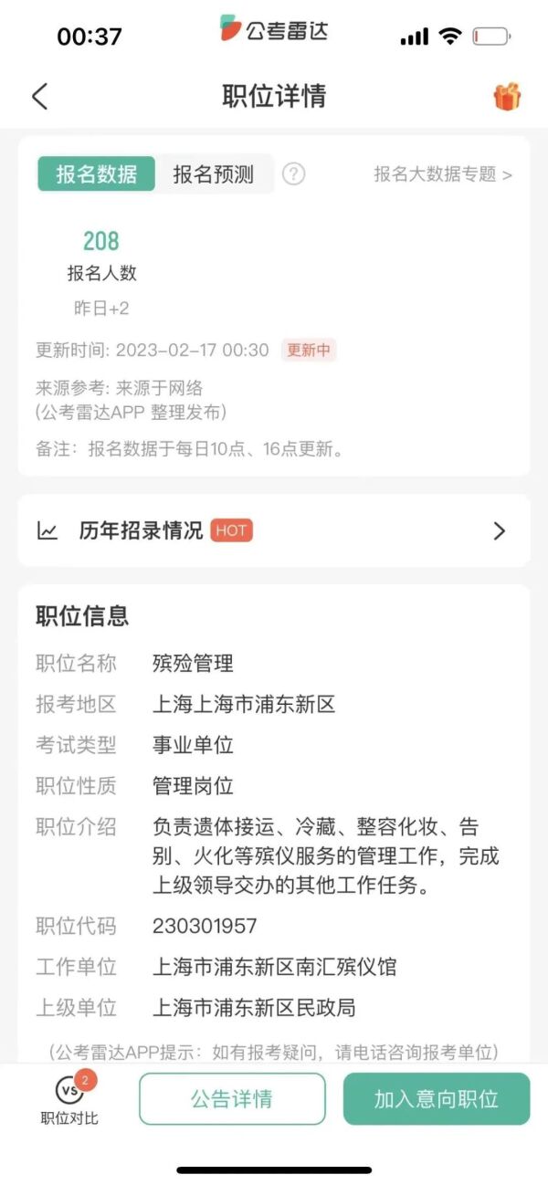 虽然不愿意啃老,但年轻一代很难靠自己走出困境。前几天,2023年上海事业单位考试开启报名,陈秋原报名的岗位限制比较多,往年只有二三十人报考,今年人数翻了倍。截止报名那天凌晨,她发现连殡仪馆的岗位都有超过200人报名,她转发给闺蜜,“太卷了”。