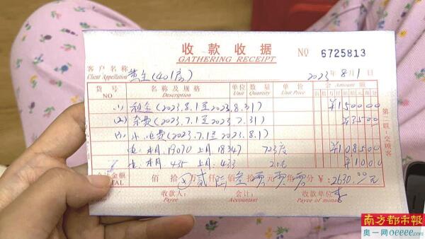 海女士房租水电缴费单据。