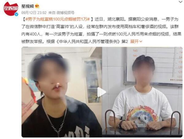 男子为炫富, 烧100元, 被罚1万, 点烟被
