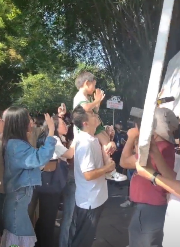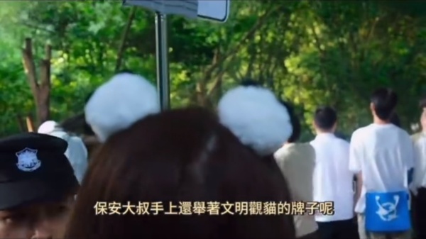 在画面的最后是围观游客在那感慨说大熊猫被他们吓走了,是的你没看错,大熊猫被这群演员的喊叫声吓走了。