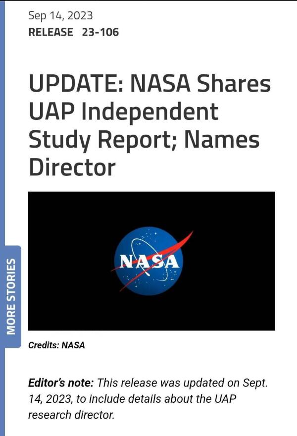 9月14日,美国国家航空航天局(NASA)发布关于不明异常现象(UAP)报告表示,美国宇航局可以在收集更多关于不明飞行物的数据方面发挥关键作用。