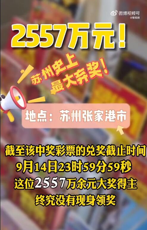 截止到9月14日23时59分59秒,福彩双色球第2023081期苏州2557万余元大奖得主迟迟没现身领奖。此次2557万余元的弃奖,是江苏福彩历史上最大的一次弃奖。根据规定,弃奖奖金将全部纳人福彩公益金,用于支持社会福利事业、扶老、助残救孤、济困等领域。