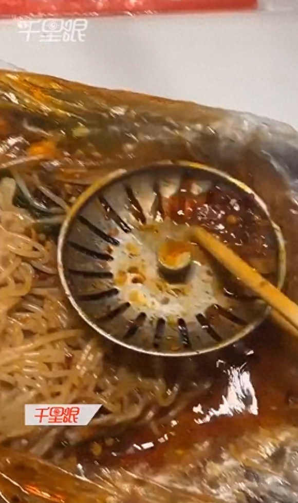 张同学称:“是我们学校的外卖,他们自主经营的,我室友点的麻辣面,送过来之后拌的时候发现了一个地漏,很震惊也很想笑。翻过来之后发现地漏可能是新的,后来老板给我室友重新弄了一碗,还送了两个鸡腿和一瓶饮料,老板说是新的阿姨不小心弄掉下来的,感觉有点不卫生。”