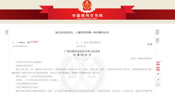 日前,该案的一审判决书公开,朱某因犯拐卖妇女罪,被判处有期徒刑七年,并处罚金人民币六万元。