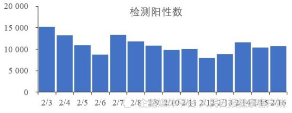 根据中国疾病预防控制中心2月份以来发布的6次《全国新型冠状病毒感染疫情情况》,1月30日核酸检测阳性数2.4万例,2月6日核酸检测阳性数为0.9万例,2月13日为8847例,2月16日为10720例。虽然核酸检测阳性数及阳性率已大幅下降,但是感染者人数仍然存在。2月份以来,31个省(区、市)及新疆生产建设兵团报告的核酸检测阳性数日新增仍在5000例以上。