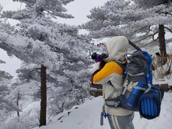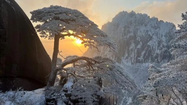 昨天,黄山迎来大雪天气,最大积雪深度达9cm。根据气象部门信息,黄山风景区今天白天晴到多云,日出日落和云海概率均在60%以上,可见雾凇、雪景。