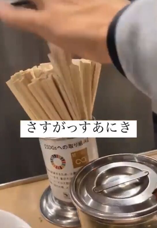 综合NHK等日媒报道,根据一段在“道顿堀神座”拉面店拍摄的简短视频,一名男子从餐桌上筷子筒里一把抓起多双一次性筷子,并将筷子头放入嘴里舔,随后将这些筷子放回筷子筒里。在视频中,可以听到该男子与其他人的嬉笑声,而在视频上还配有“不愧是我大哥”的字幕。