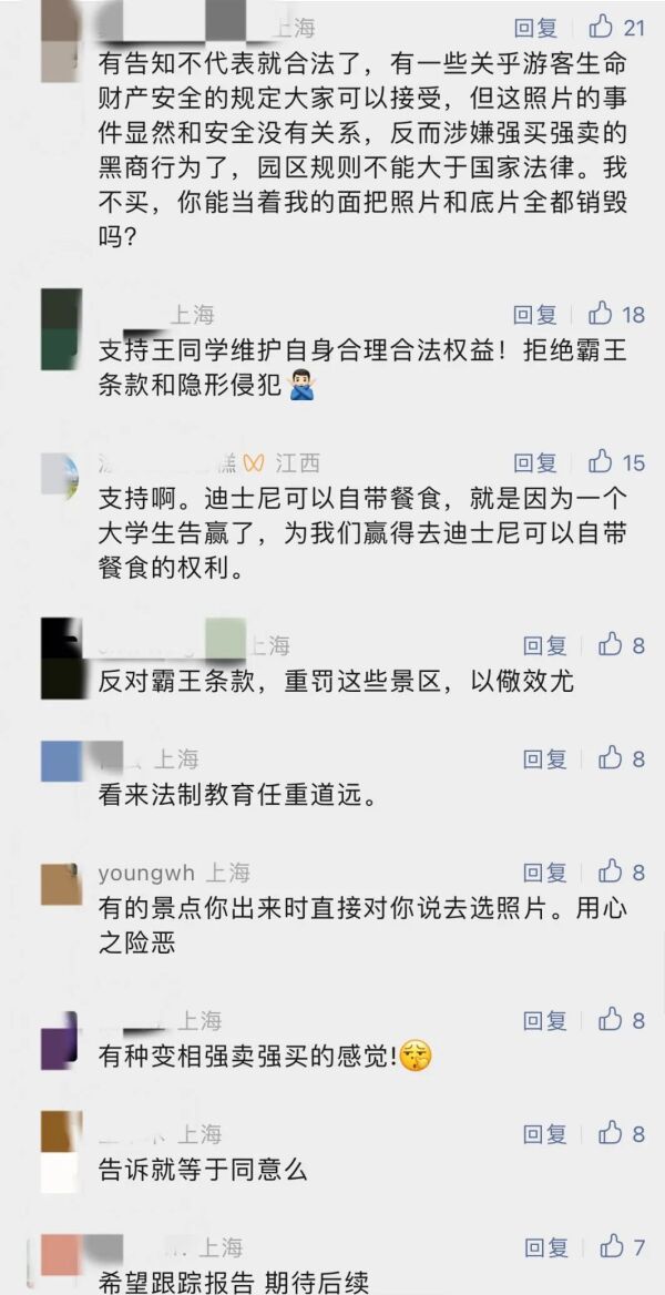而对于迪士尼所说的“条款须知”,律师认为,“存在变相强制游客同意的情况”,这些入园规定和《民法典》等有冲突,此外并没有说清楚这些照片的用途,有可能存在超出合法、正当必要性的范围。