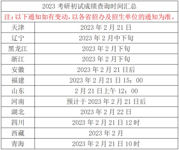 导读:2月20日,据中国研究生招生信息网消息,多地公布了2023考研初试成绩查询时间。预祝各位考生,取得理想成绩。