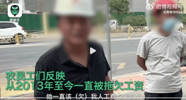 山东济南长清区多位农民工向青蜂侠青年守护平台反映被拖欠工资长达10年之久,多次催要无果。