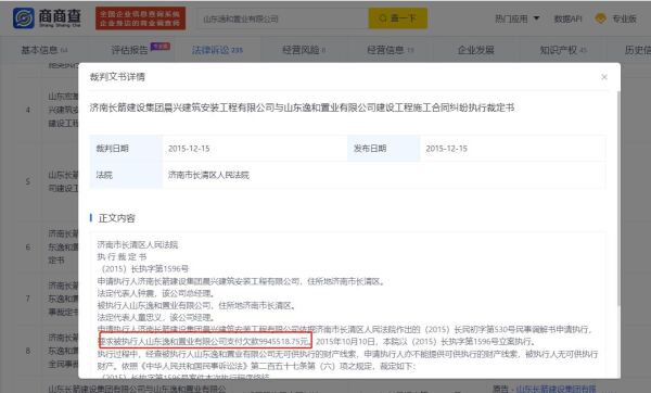 【商商查】显示,山东逸和置业有限公司成立于2006年,注册资金5000万元,目前有多个被执行、限高、法诉等风险。