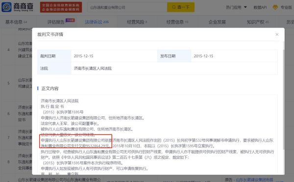 朱经理还表示,他们在2015年起诉了逸和置业,虽然胜诉了但至今一分钱也没有拿到。这在【商商查】的裁判文书查询中也找到了相关的记录。