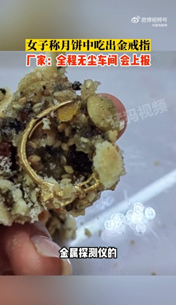 据猛犸新闻报道,9月26日河南周口一女子称在老五仁月饼吃出疑似金戒指。