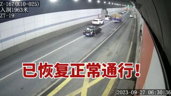 9月27日凌晨3时28分,南京交通运营管理集团所辖江心洲大桥夹江隧道出城方向一辆货车连续撞击隧道右侧及左侧边墙,横跨三股车道停在隧道中,导致交通中断。